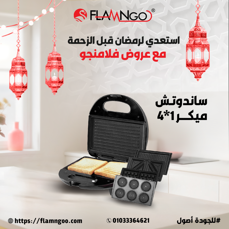 - مع سندوتش ميكر فلامنجو 4×1، حضري وجباتك بسرعة وسهولة وبأكثر من طريقة.