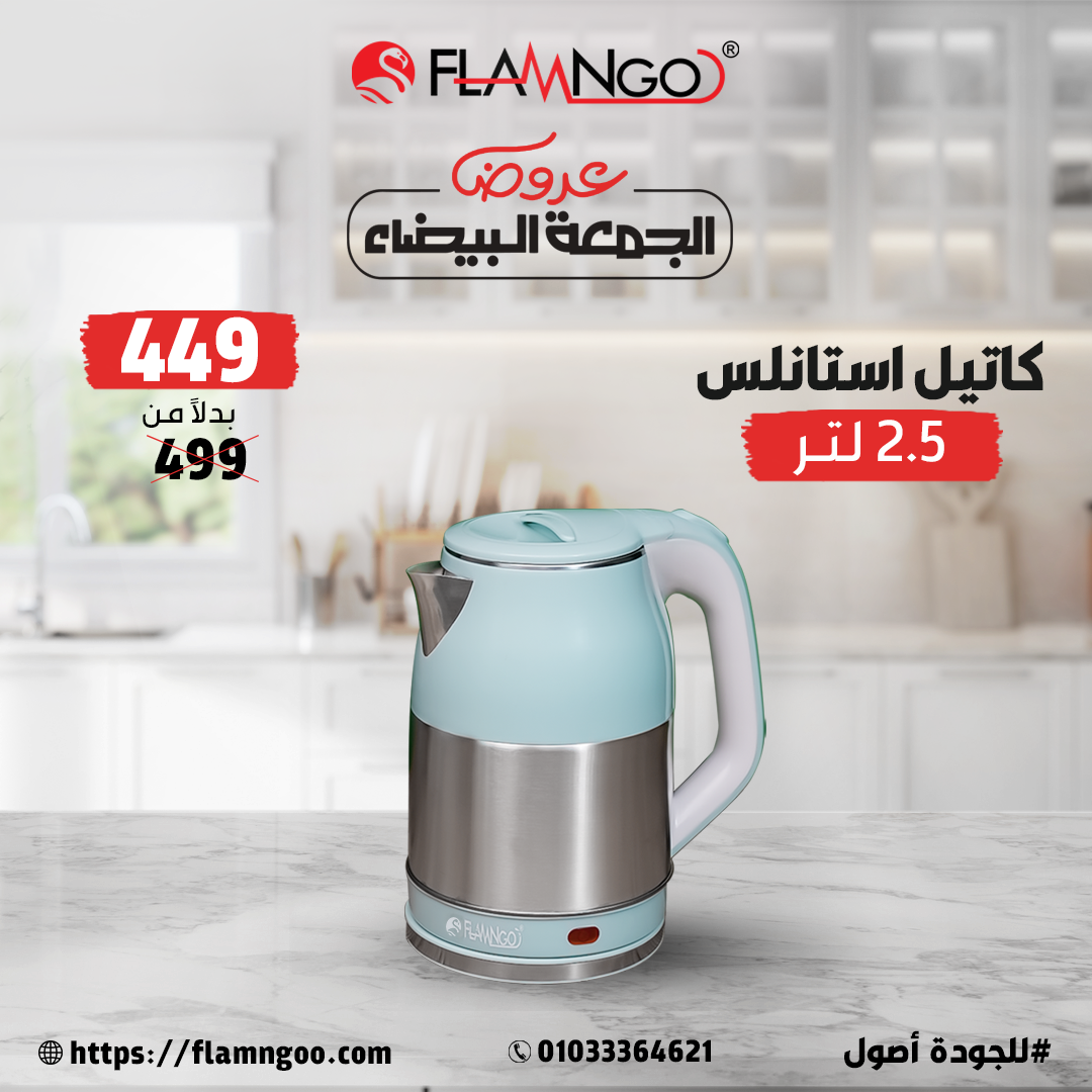كاتل فلامنجو استانلس 2.5 لتر – عرض خاص بـ 449 جنيه